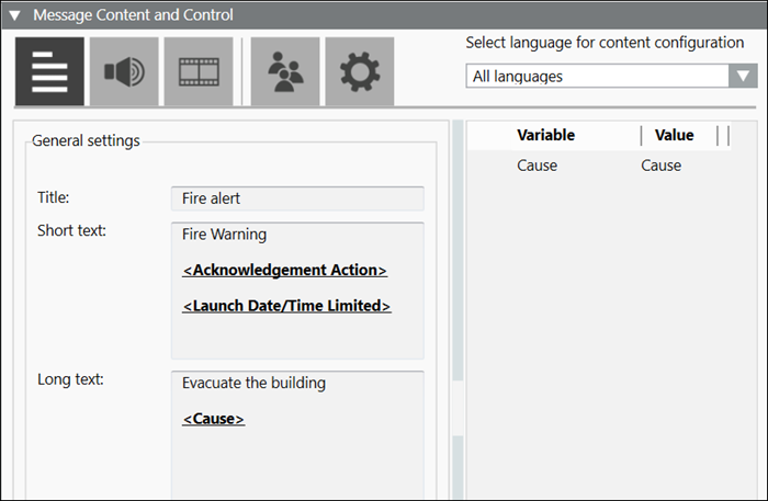 2 | Select Language for Content Configuration | Allows the user to select the language-specific content entered at the time of message configuration. |