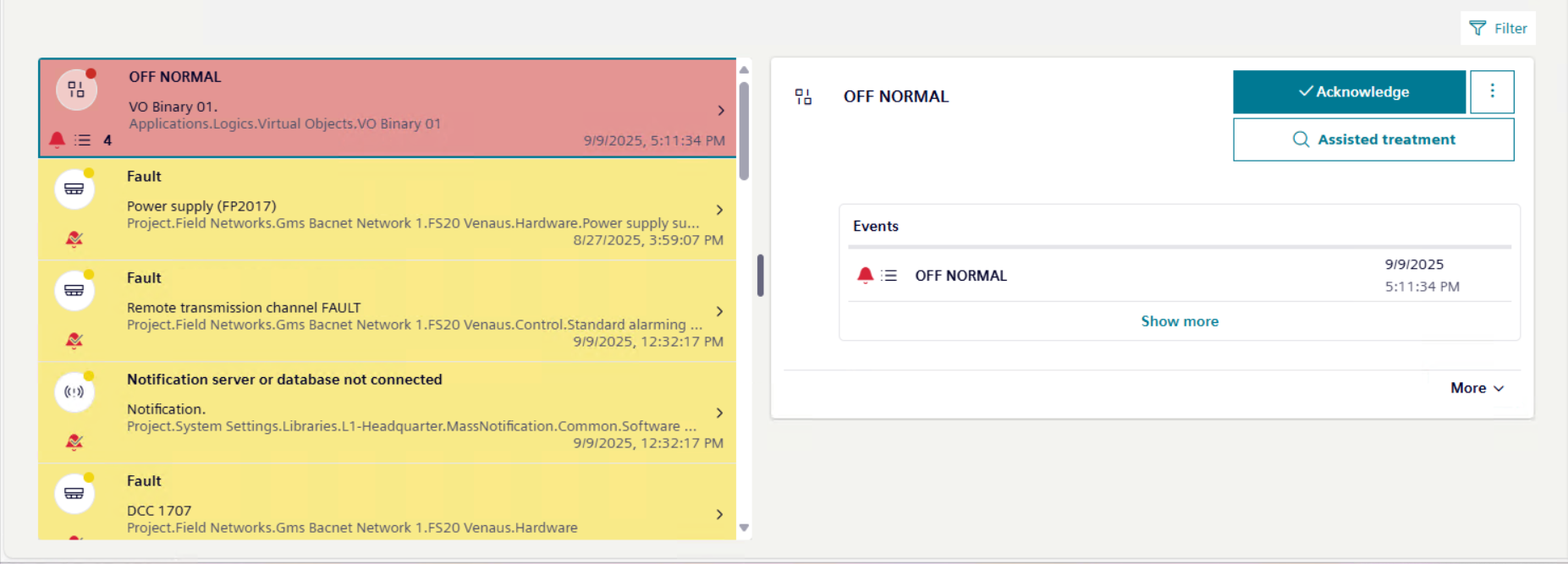 A recurring event occurs when the same event source repeatedly generates the same alarm condition. More specifically, this happens when the same property of a field point continuously switches between the active and quiet states.