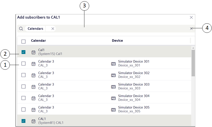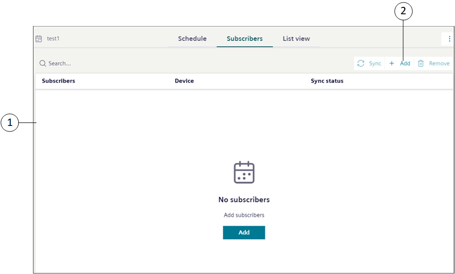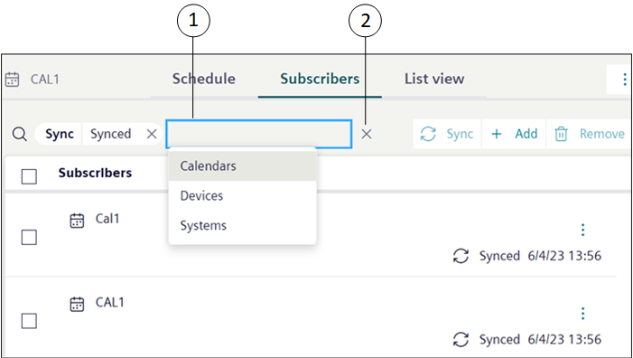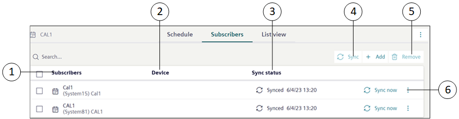 1 | Subscribers | Displays the list of remote calendars of devices and Management station calendars of partner systems that are added as subscribers. |