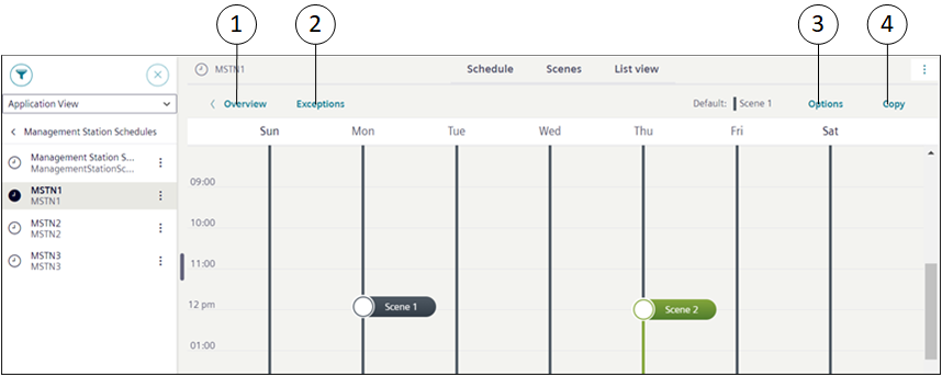 You can also create exceptions to schedulers. When a management station exception is ON, it overrides the weekly scheduler.