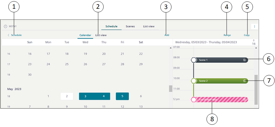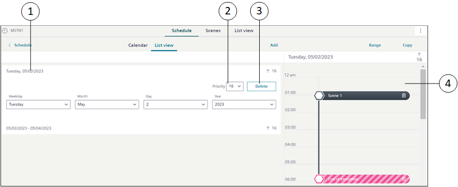 3 | Schedule Overview | Displays information of the scheduler entry and exception entry, of the selected scheduler. |