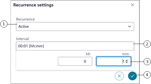3 | hh and mm | Allows you to set the recurrence time in hours and minutes using |