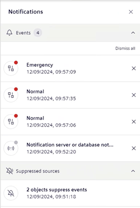 - The right panel expands. Under Notifications, it displays all the messages since the last time the operator cleared the last ones. These notifications are grouped per type.