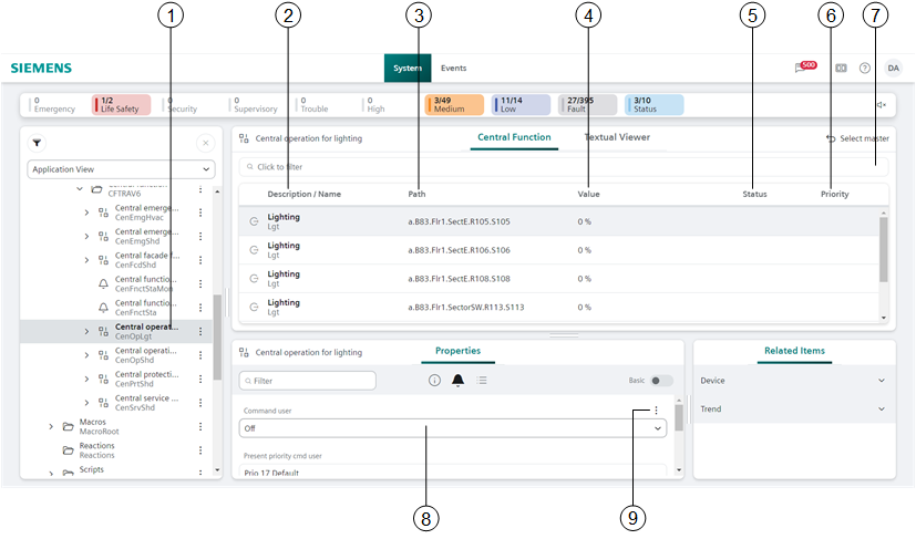 6 | Priority | Displays the presently pending BACnet priority for the object. Priorities can be displayed differently for each object. Objects with BACnet priority ≦ 7 cannot be switched. |