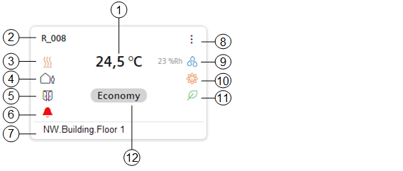 | Displays the room description. The display is based on the settings selected in Text representation. |