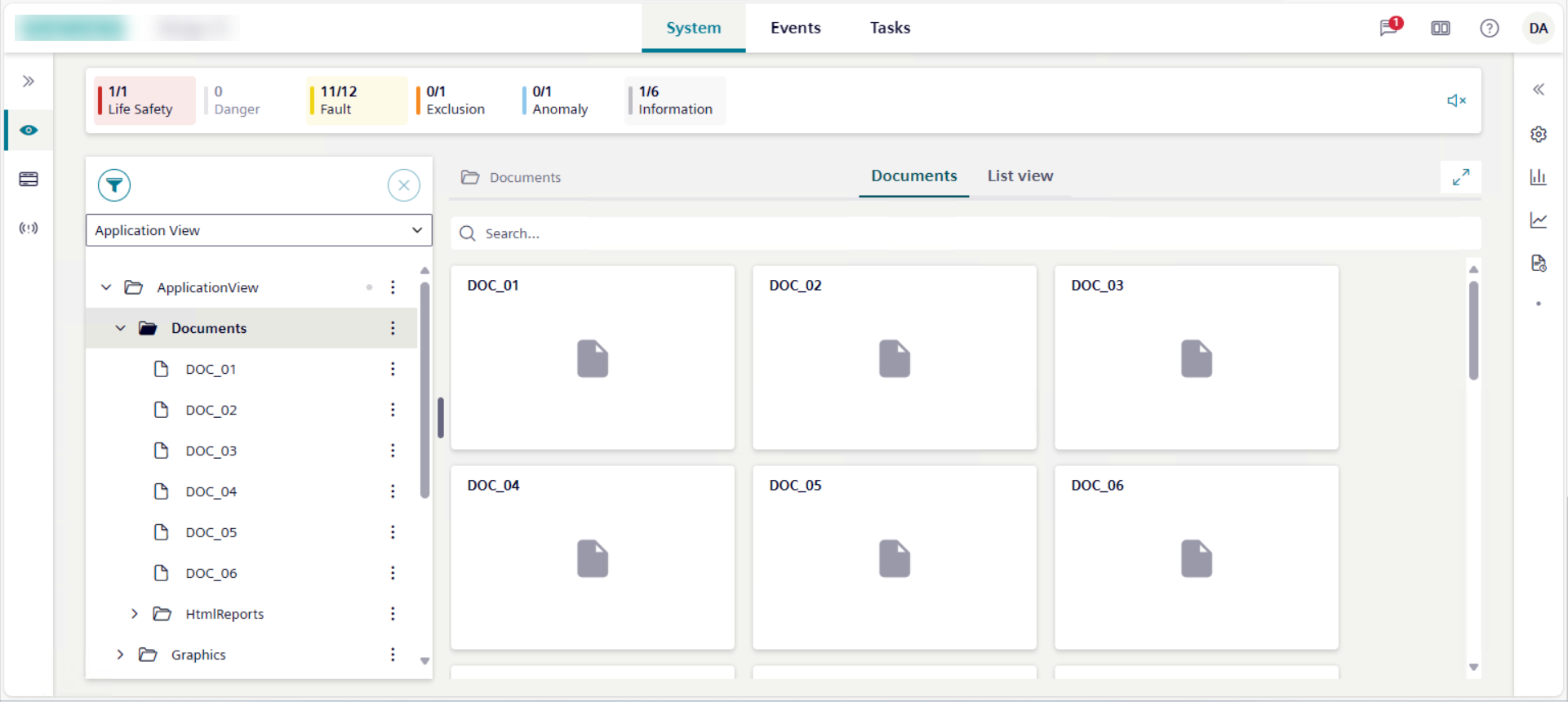 - If you select Documents, the Documents tab displays all the available documents as tile icons.