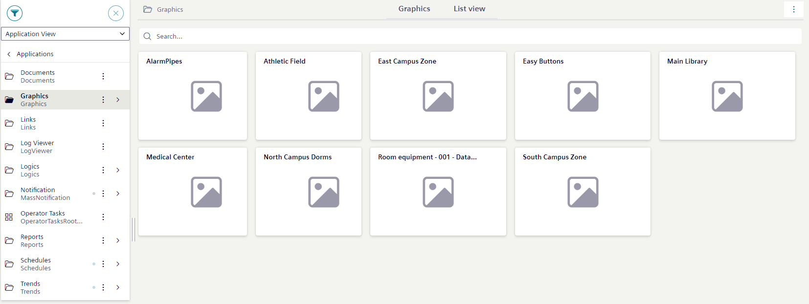 Graphics are in the Application View under Applications > Graphics.