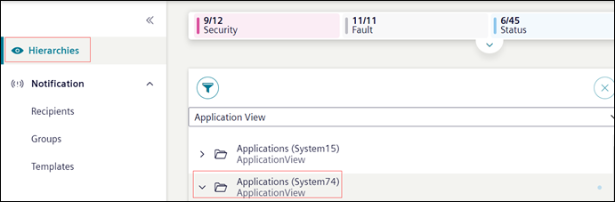 - In the left side bar, click Hierarchies and in the System Browser select Application View (System 2).