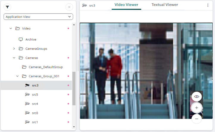 - The Video Viewer displays the images from the selected camera in the primary pane.