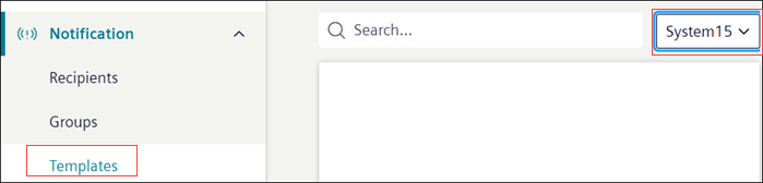 NOTE: In the case of the distributed system environment, to view the Notification template of each system, select the system from the System drop-down list.