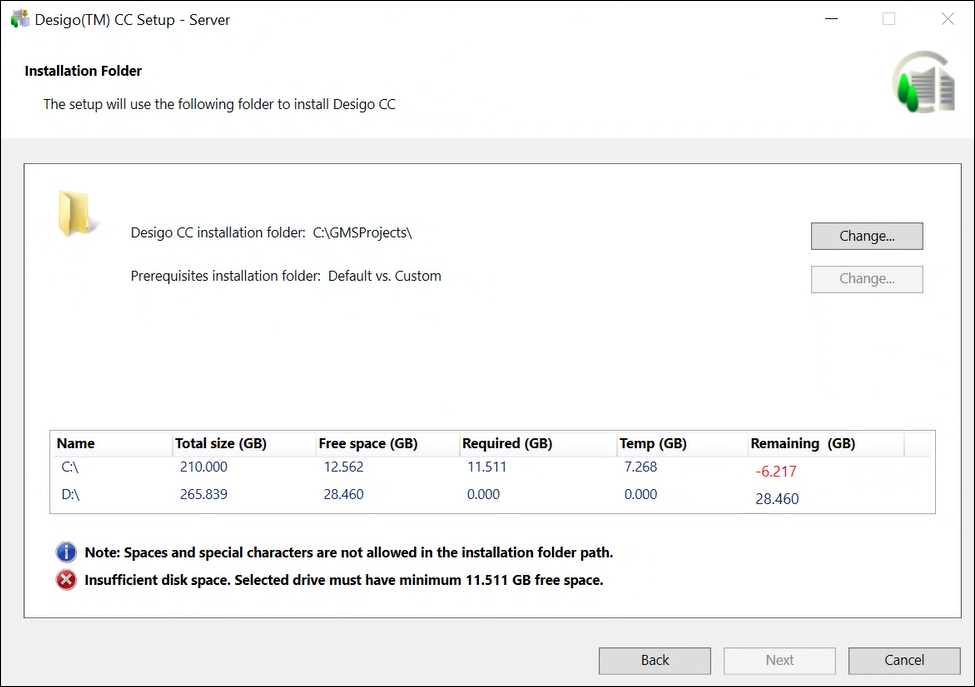 Before you perform fresh installation (custom, semi or silent) or upgrade Desigo CC, select shortest source or destination path for copying installation media.