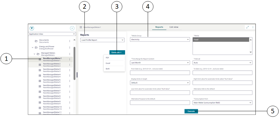 4 | Parameter information section | - After selecting one of the following formats: PDF, Excel, or Both, the corresponding parameter information section is displayed. |
