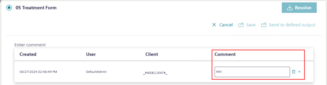 When configuring the [Treatment form step], if the step is set to Repeatable = Yes then you can add or modify the comment or change the text group selection multiple times.