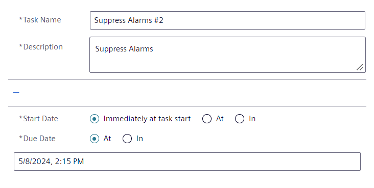 Sets when the task will end. When a task reaches the specified due date, depending on the template configuration, the task may then be automatically or manually reverted.