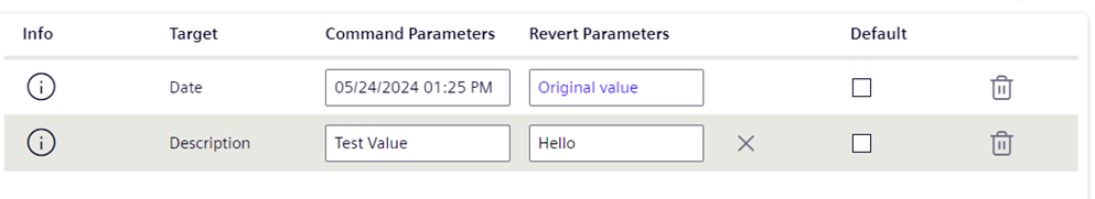 - The Command Parameters and Revert Parameters column become available if the commands of this tasks have parameter values that can be overridden: