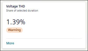 THD stands for Total Harmonic Distortion. Voltage THD tile shows the percentage of hours of distortion occurred over selected timeline. The tile shows the status of Voltage THD as All Ok, Warning, or Limit violated as per Grid code EN 50160.