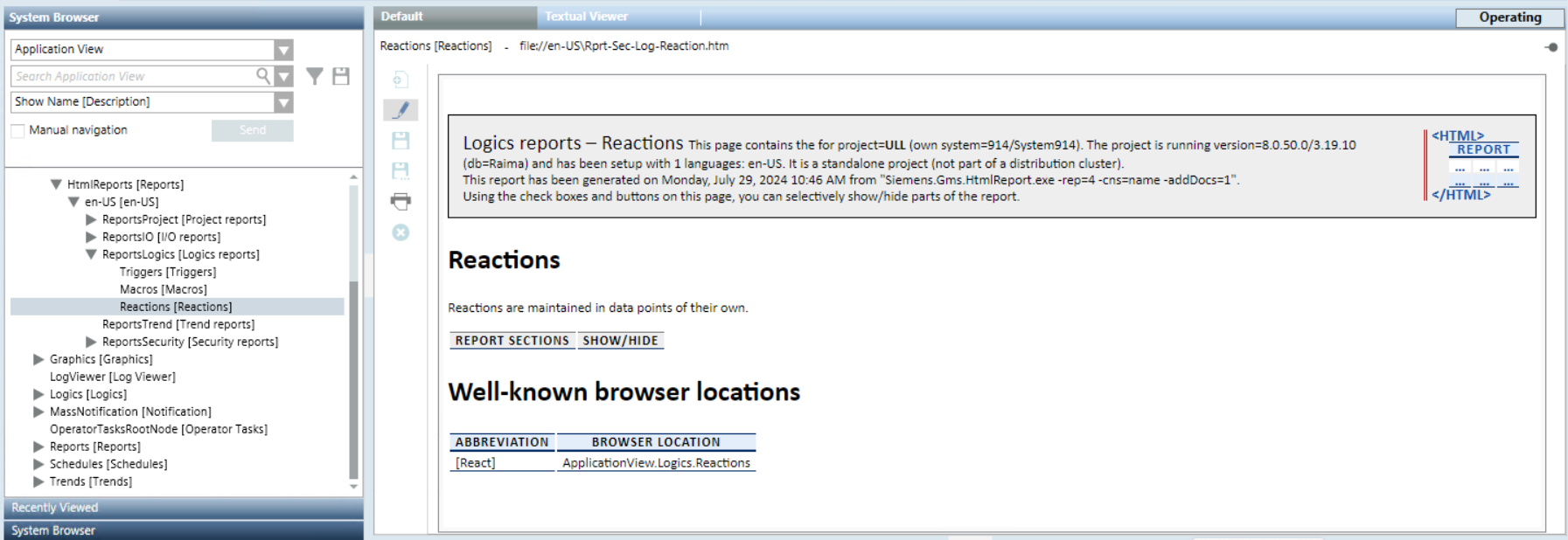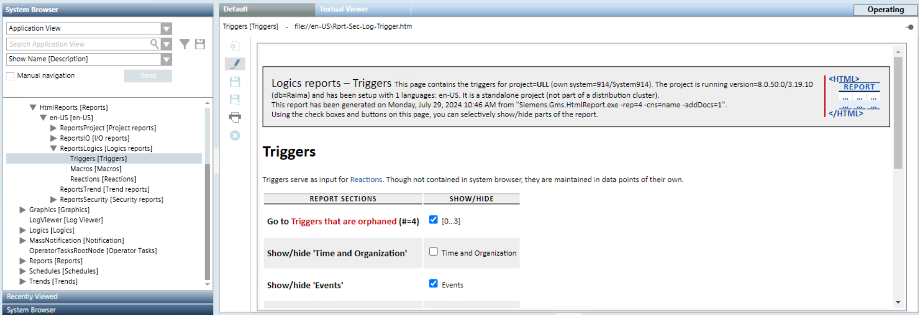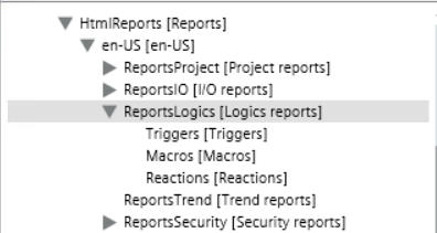 Logics reportsThe Logics report folder includes a set of logics-specific reports. Triggers reportMacros reportReactions report