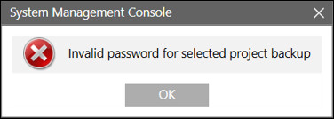 NOTE: If the password is entered incorrectly on the second attempt, the project restoration process is cancelled.