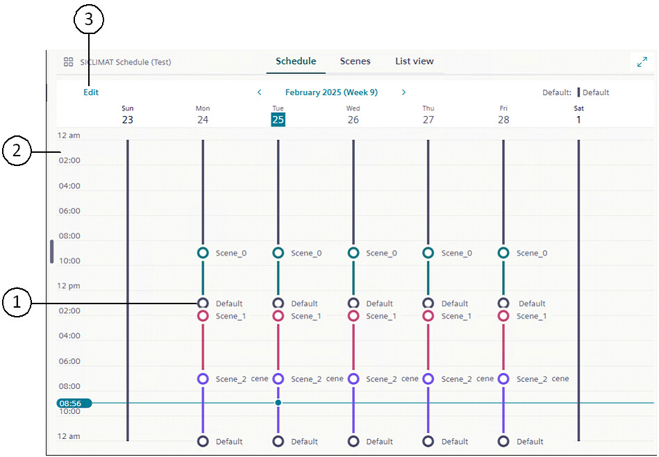 3 | Edit | Navigates to the Edit mode that allows you to add or edit weekly schedule and exception entries. |