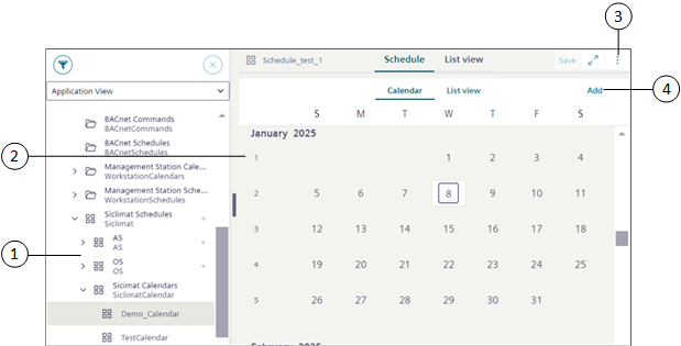The System Browser displays calendar entries created in the Desigo CC Installed Client, those can be modified from the Flex Client. The modified calendar entries reflect in the Desigo CC Installed Client as well.