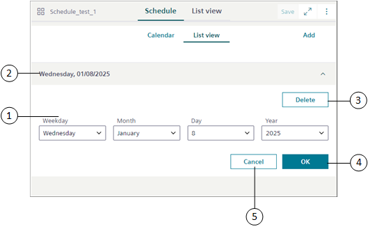 2 | Date or Date range | Displays the details of the selected calendar entry. |