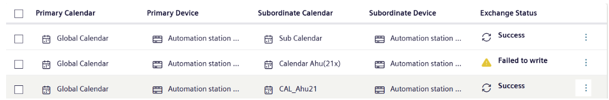 An “Exchange Status” column shows the status of any calendar synchronization operations between these devices. “Success” indicates that the primary calendar has synchronized with a given subordinate calendar/device. “Failed to Write” indicates that synchronization did not occur.