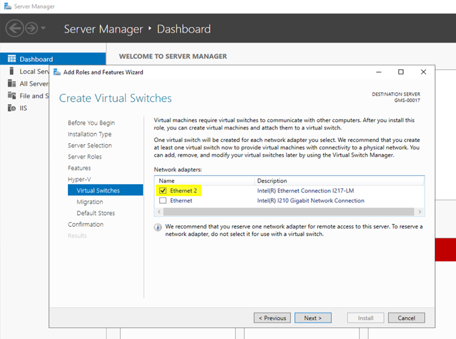 - On the Virtual Switches page, select the desired network adapter from the list, and then select Next.