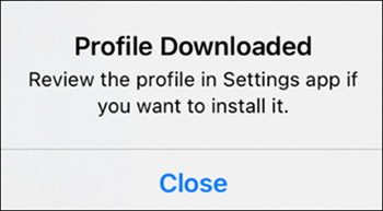 - Tap Close on the Profile Downloaded screen.