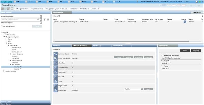 - Select Project > Management System > Servers > Main Server > WSI Statistics > [WSI instance].